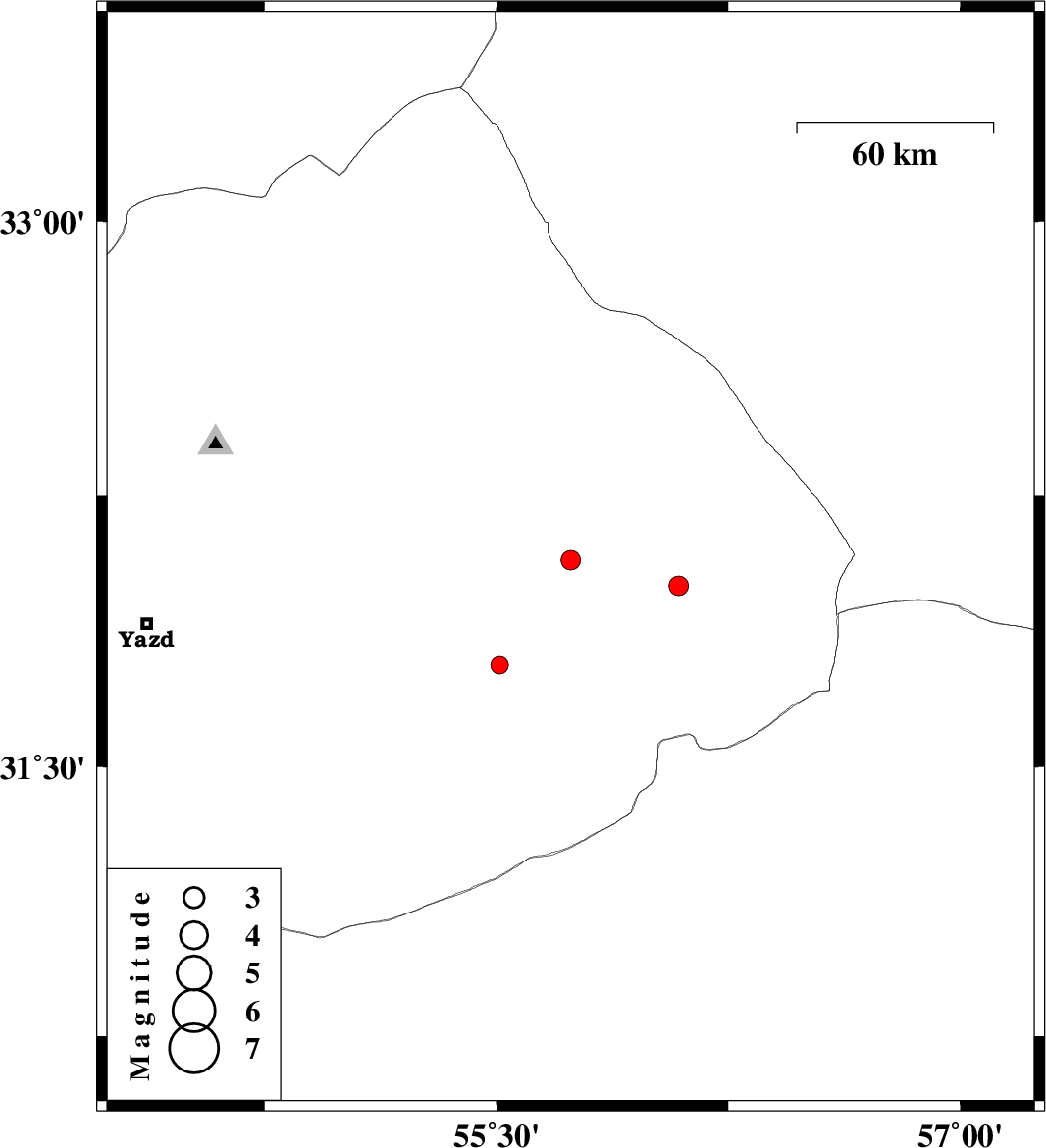 | 2019/09/03 | 10:44:12.1 | 15:14:12.1 | 31.78 | 55.51 | 5 | ML2.6 | Yazd Province, 22 km North-East of Bafq | ||