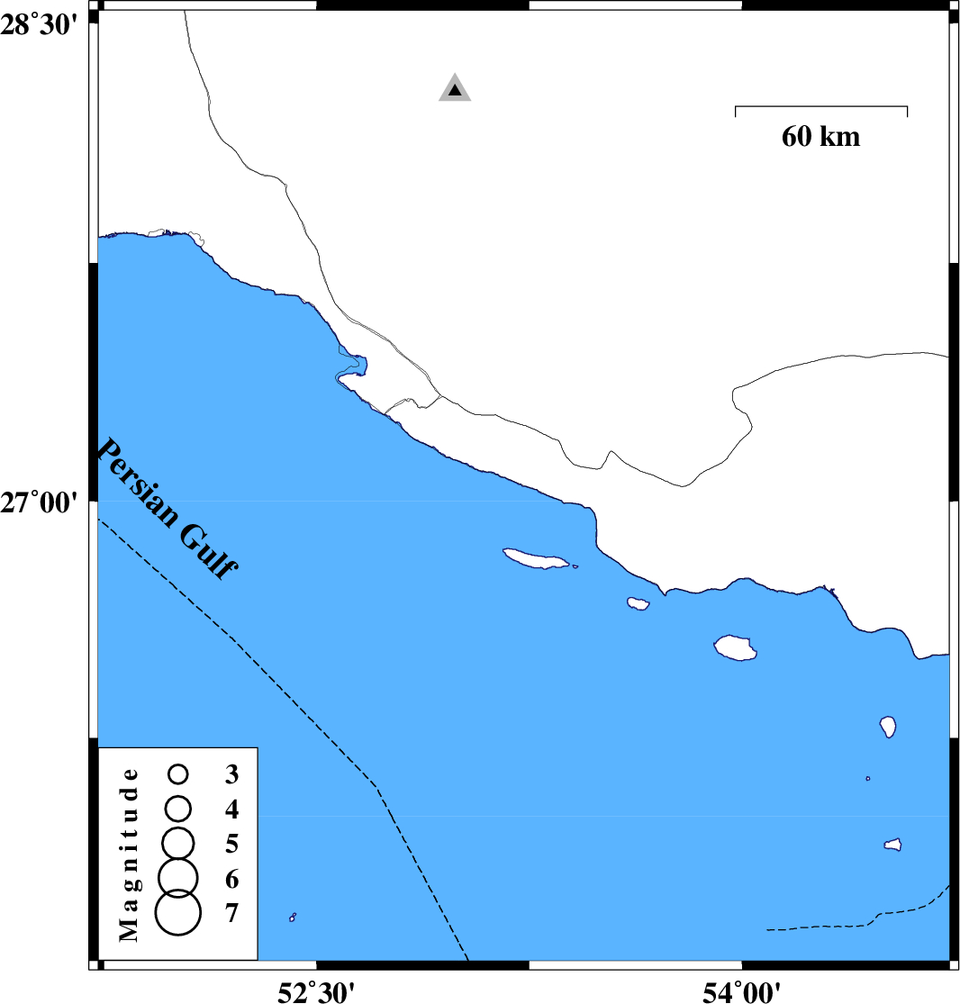 | 2019/08/29 | 22:17:22.5 | 02:47:22.5 | 27.04 | 53.23 | 15 | ML3.6 | Persian Gulf, 33 km South of Lamerd |