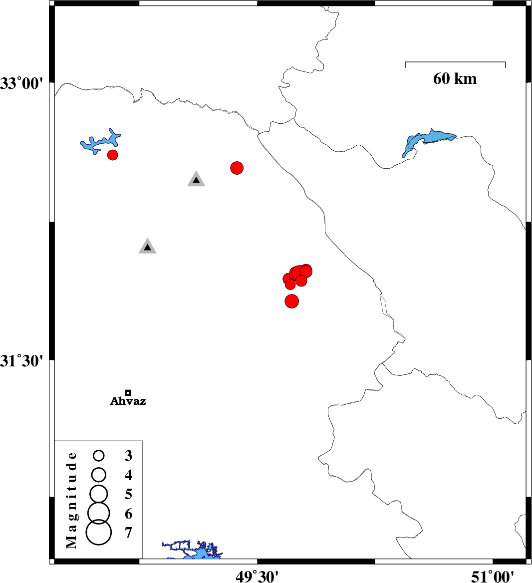 | 2019/09/24 | 09:02:59.3 | 12:32:59.3 | 31.97 | 49.77 | 20 | ML4.7 | Khoozestan Province, 18 km North of Izeh | ||