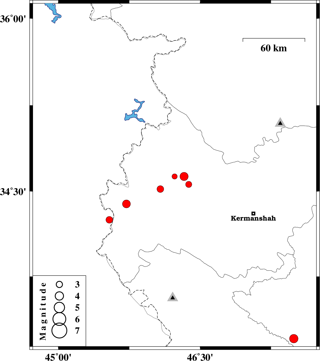 | 2019/09/24 | 10:35:16.4 | 14:05:16.4 | 34.39 | 45.72 | 12 | ML3.8 | Kermanshah Province, 18 km -West of Sar-e pol-e zahab | ||