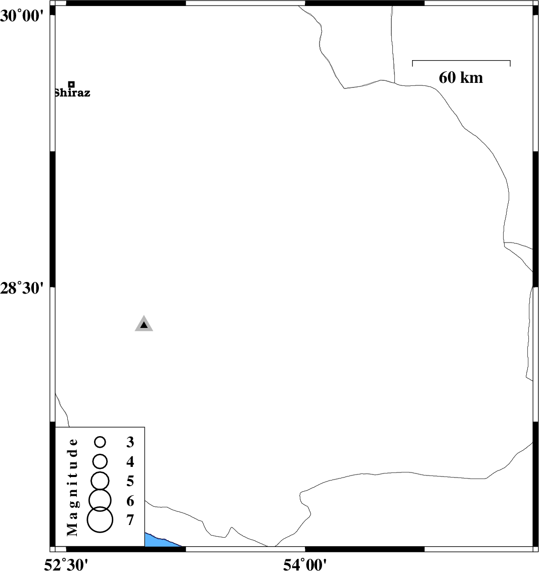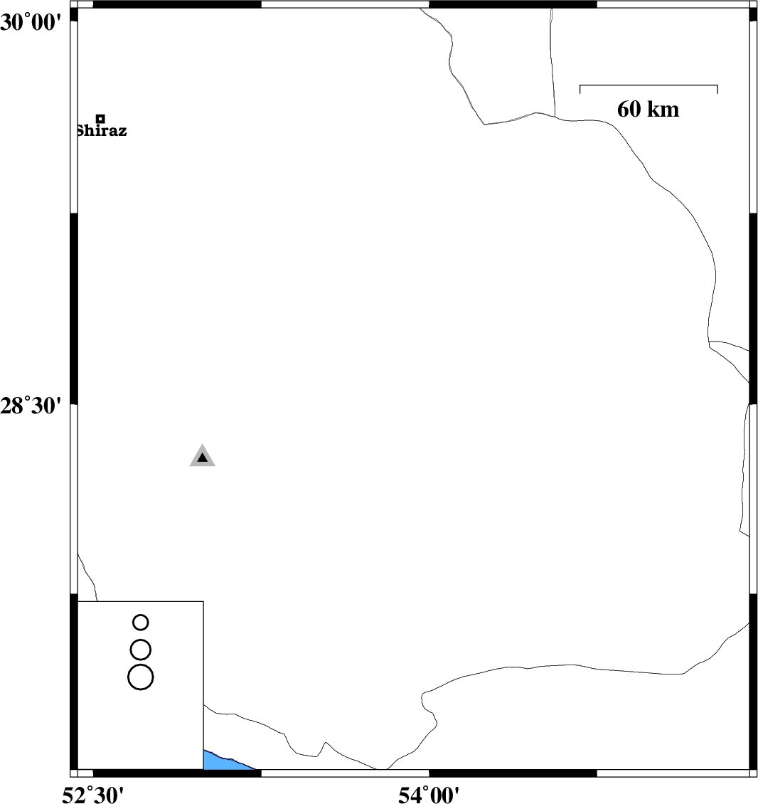 | 2019/09/06 | 14:22:50.9 | 18:52:50.9 | 28.55 | 53.93 | 11 | ML3.5 | Fars Province, 37 km -East of Jahrom |