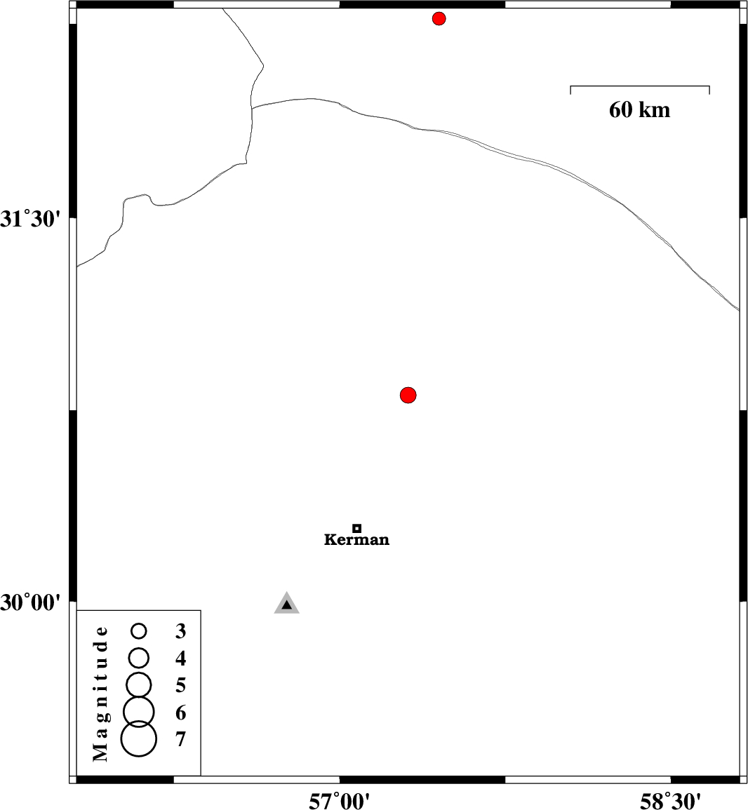 | 2019/09/29 | 12:33:15.9 | 16:03:15.9 | 32.27 | 57.45 | 14 | ML2.7 | Yazd Province, 127 km North-East of Ravar |