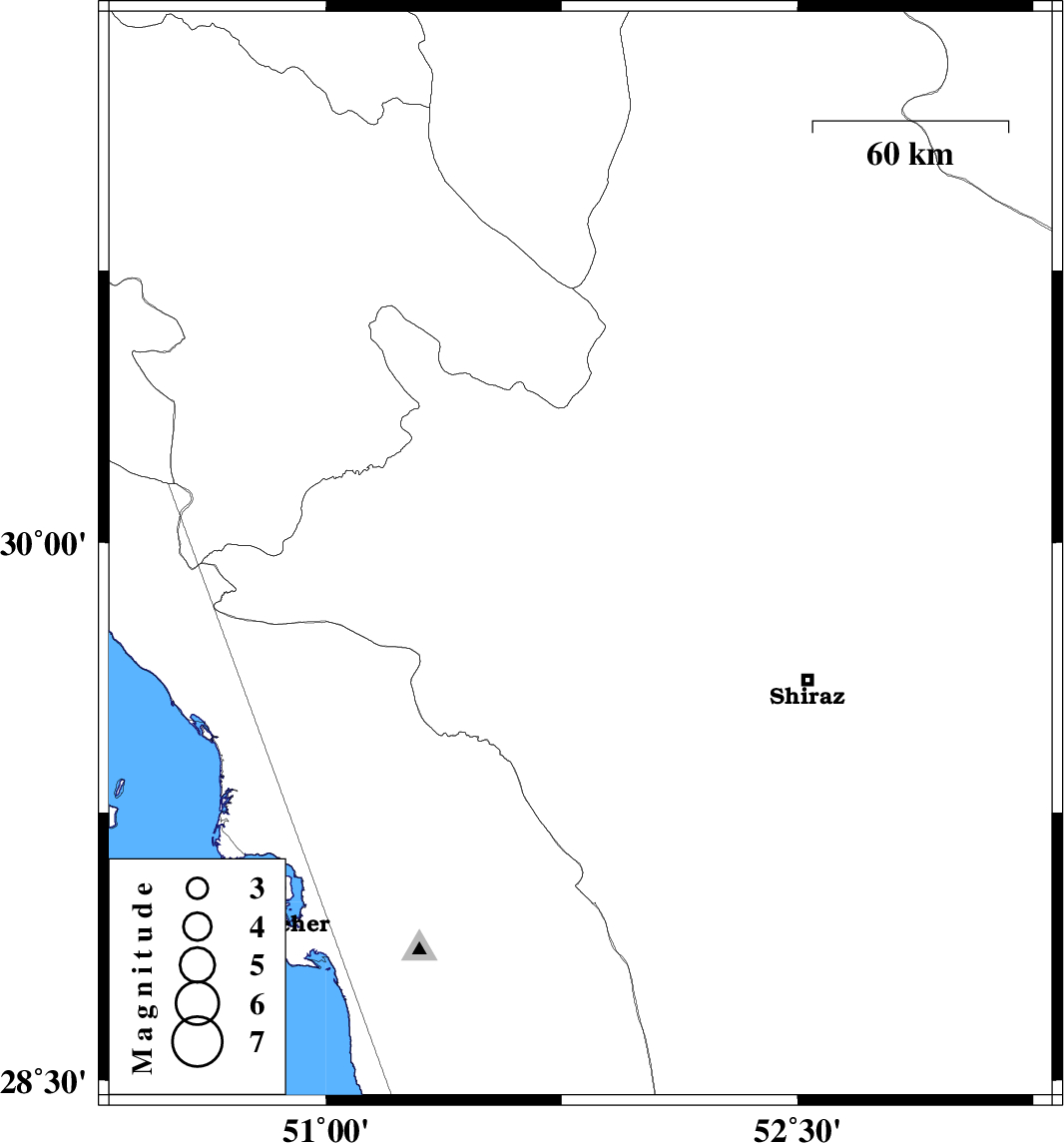 | 2019/10/02 | 08:35:12.9 | 12:05:12.9 | 29.96 | 51.81 | 5 | ML2.6 | Fars Province, 33 km South-East of Nurabad |