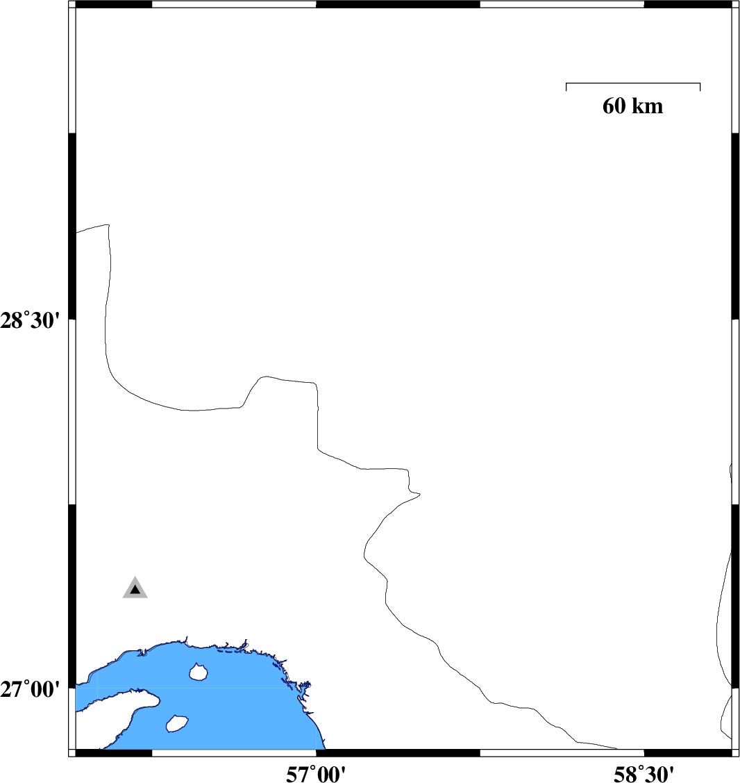 | 2019/09/28 | 23:53:16.2 | 03:23:16.2 | 28.81 | 58.14 | 14 | ML3.9 | Kerman Province, 39 km South-West of Bam |