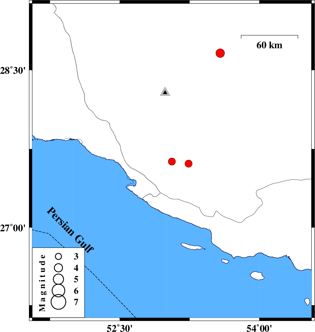 | 2019/10/04 | 08:43:09.7 | 12:13:09.7 | 27.61 | 53.24 | 14 | ML3.5 | Fars Province, 32 km North of Lamerd | ||