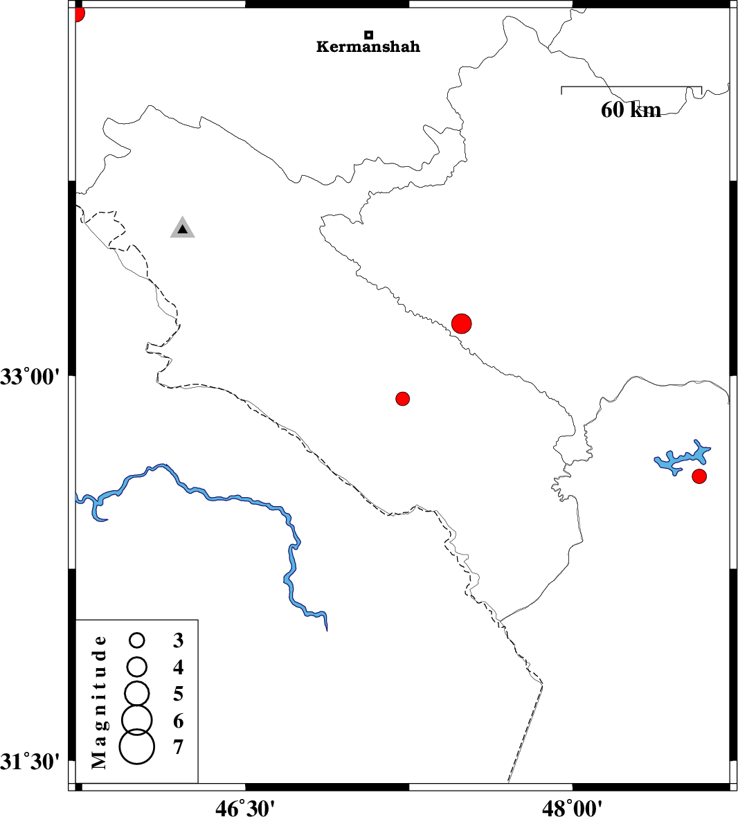 | 2019/09/24 | 10:35:16.4 | 14:05:16.4 | 34.39 | 45.72 | 12 | ML3.8 | Kermanshah Province, 18 km -West of Sar-e pol-e zahab |