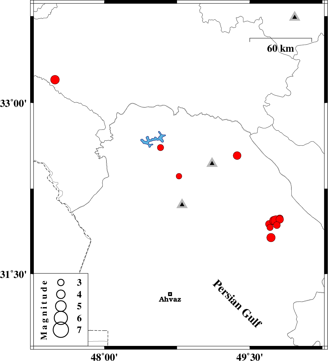 | 2019/09/25 | 13:17:34.8 | 16:47:34.8 | 31.82 | 49.72 | 28 | ML4 | Khoozestan Province, 14 km -West of Izeh | ||