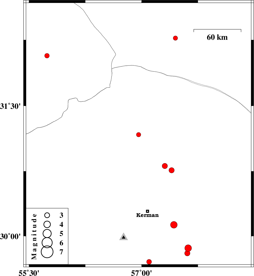 | 2019/09/19 | 07:24:15.4 | 11:54:15.4 | 29.86 | 57.62 | 10 | ML4.1 | Kerman Province, 71 km South-East of Kerman | ||