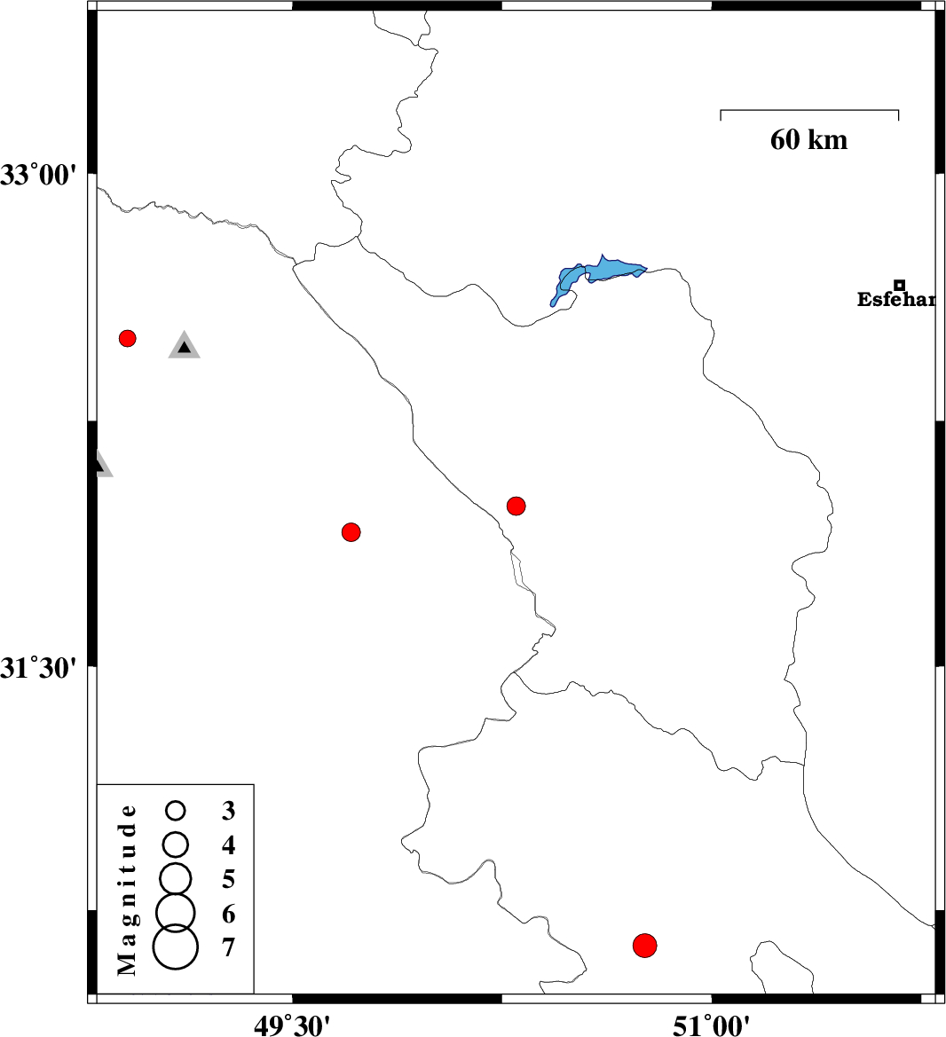 | 2019/10/07 | 01:10:28.2 | 04:40:28.2 | 31.99 | 50.3 | 14 | ML3 | Chaharmahal Bakhtiari Province, 33 km -West of Ardel | ||