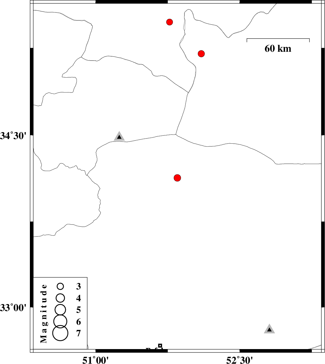 | 2019/09/26 | 09:23:16.8 | 12:53:16.8 | 35.2 | 52.1 | 14 | ML3.1 | Semnan Province, 22 km -West of Garmsar |