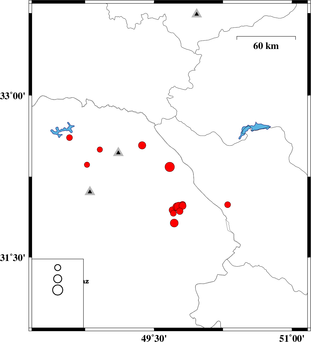 | 2019/09/25 | 13:17:34.8 | 16:47:34.8 | 31.82 | 49.72 | 28 | ML4 | Khoozestan Province, 14 km -West of Izeh | ||