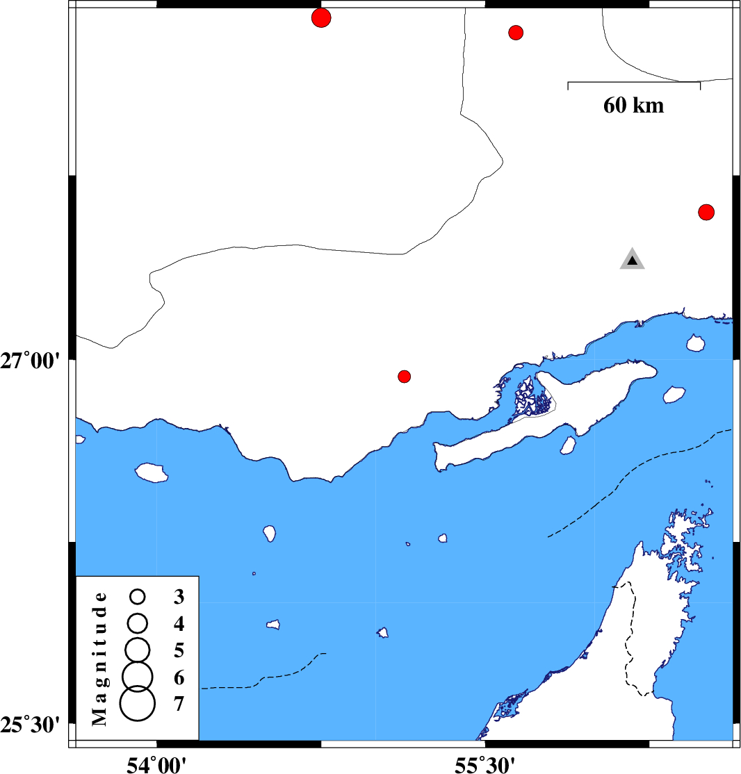 | 2019/10/12 | 16:49:40.3 | 20:19:40.3 | 26.93 | 55.13 | 15 | ML2.6 | Hormozgan Province, 53 km North-East of Bandar-e lengeh | ||