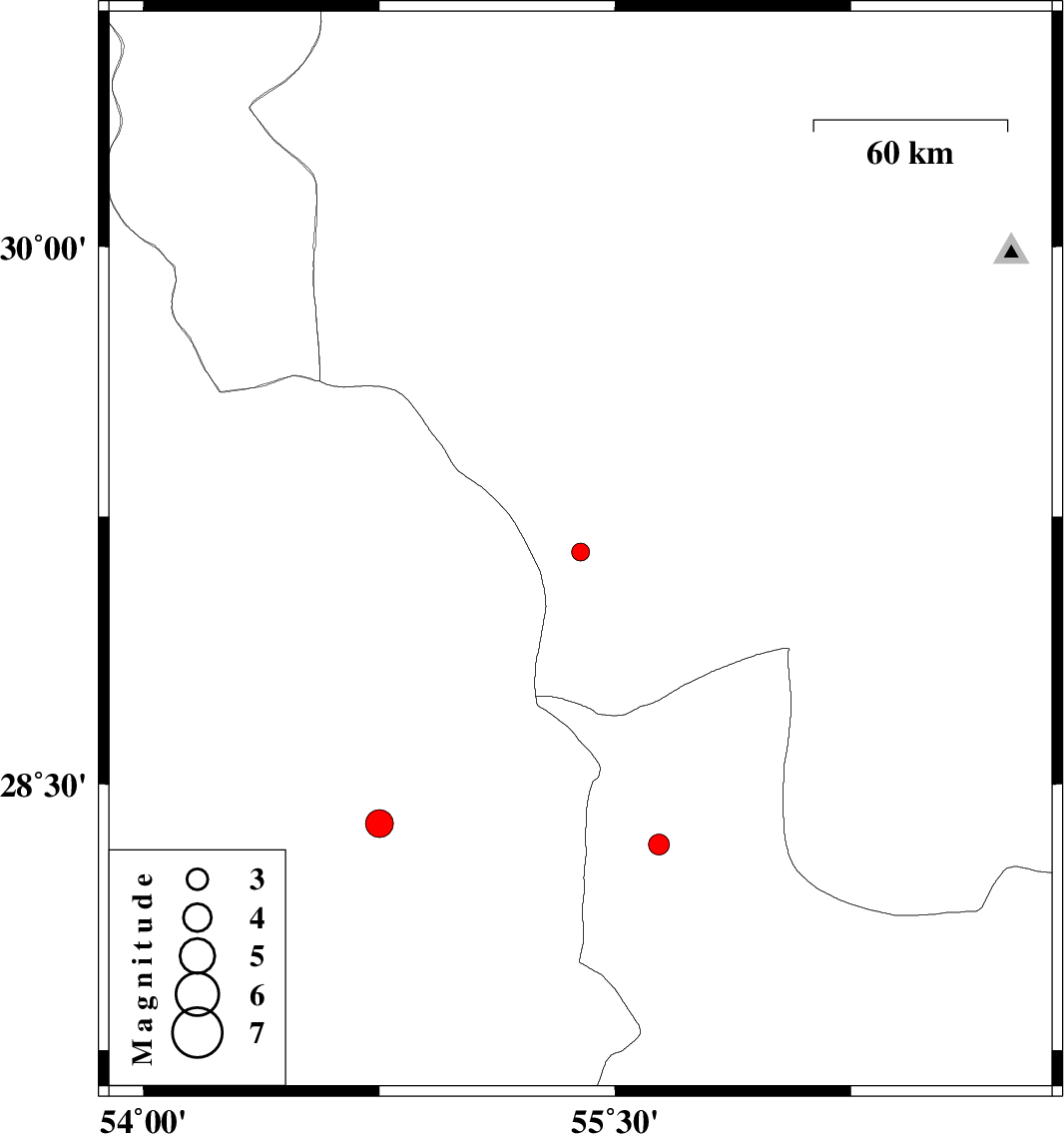 | 2019/10/11 | 09:19:34.8 | 12:49:34.8 | 28.39 | 54.75 | 10 | ML4 | Fars Province, 45 km South-East of Darab | ||