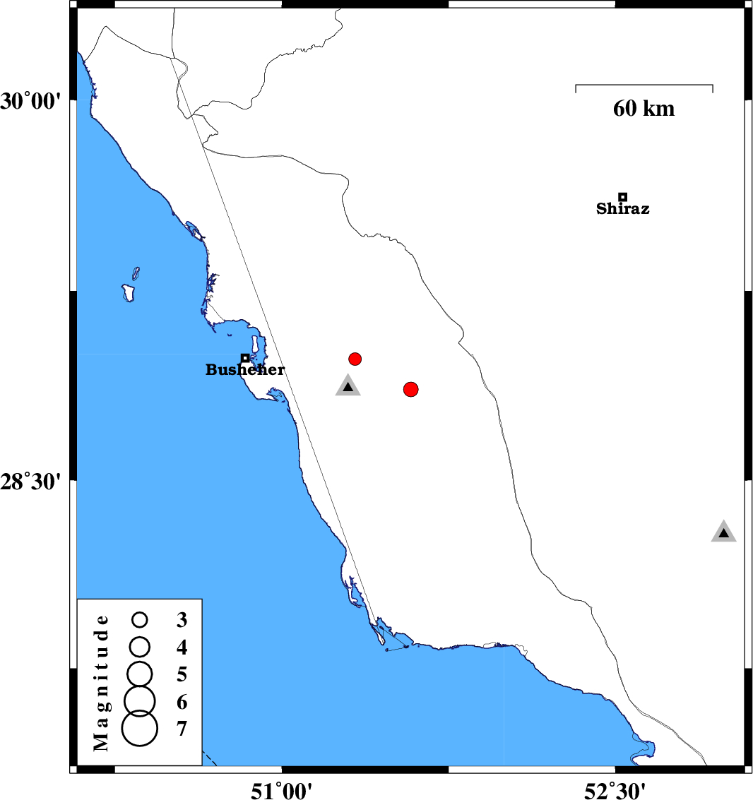 2019/10/12 | 20:53:26.1 | 00:23:26.1 | 28.98 | 51.33 | 5 | ML:2.6 | Bushehr Province, 13 km North of Ahram |