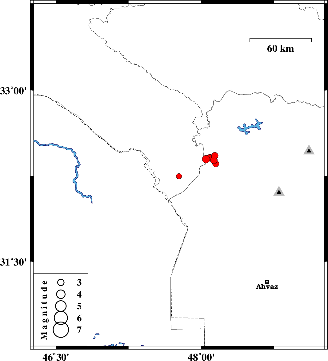 | 2019/10/13 | 02:06:27.2 | 05:36:27.2 | 32.43 | 48.14 | 14 | ML3.1 | Khoozestan Province, 20 km -West of Andimeshk | ||