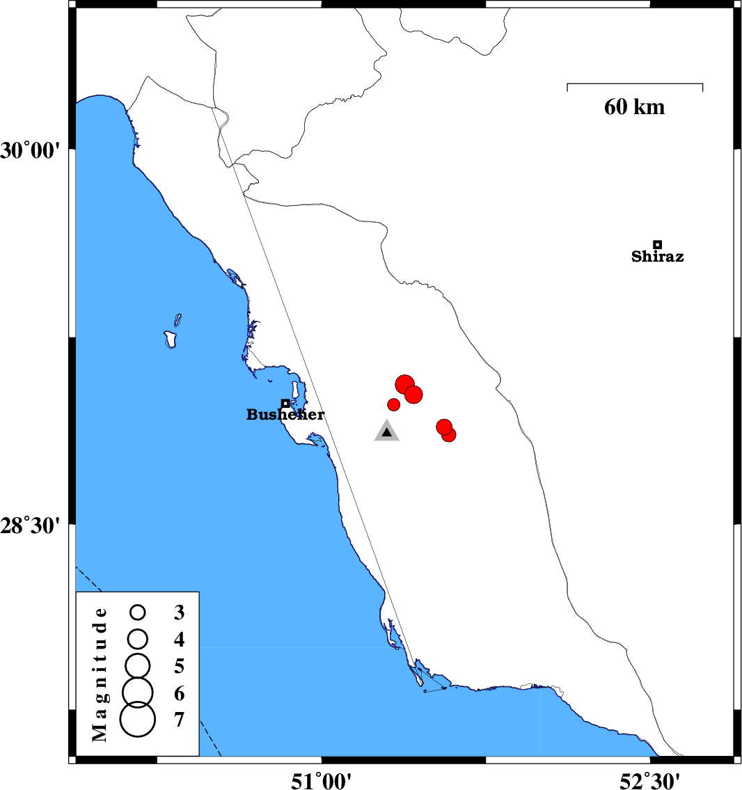 2019/10/18 03:00:12.0 06:30:12.0 29.0651.3810 ML4 Bushehr Province, 23 km North-East of Ahram