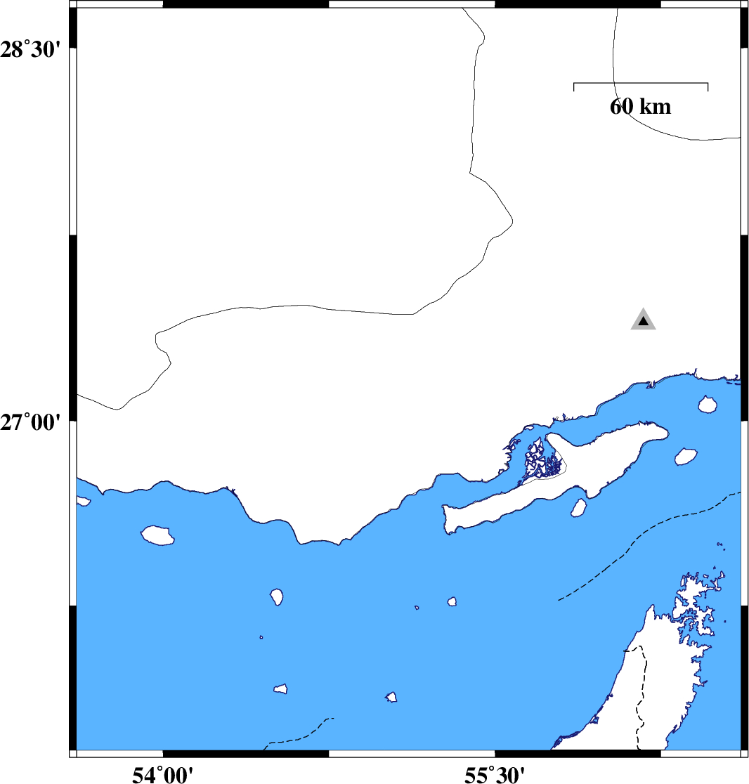 2019/10/22 | 02:34:53.6 | 06:04:53.6 | 27.34 | 55.08 | 15 | ML:3.7 | Hormozgan Province, 73 km North-East of Bastak | ||