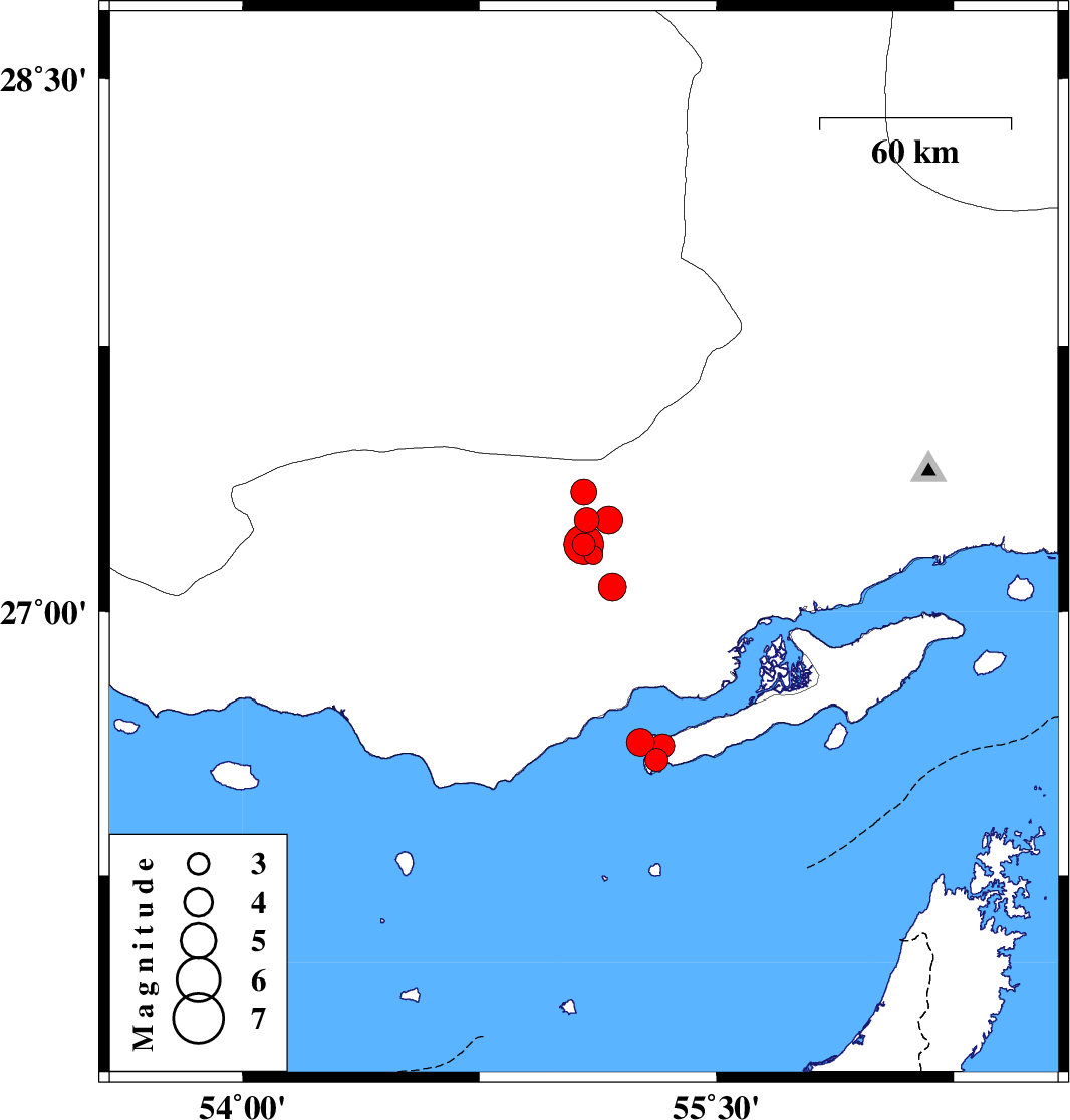 2019/10/18 04:09:38.8 07:39:38.8 26.6355.2614 ML4 Persian Gulf, 42 km North-East of Bandar-e lengeh