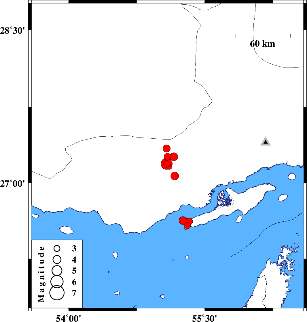 2019/10/18 04:09:38.8 07:39:38.8 26.6355.2614 ML4 Persian Gulf, 42 km North-East of Bandar-e lengeh