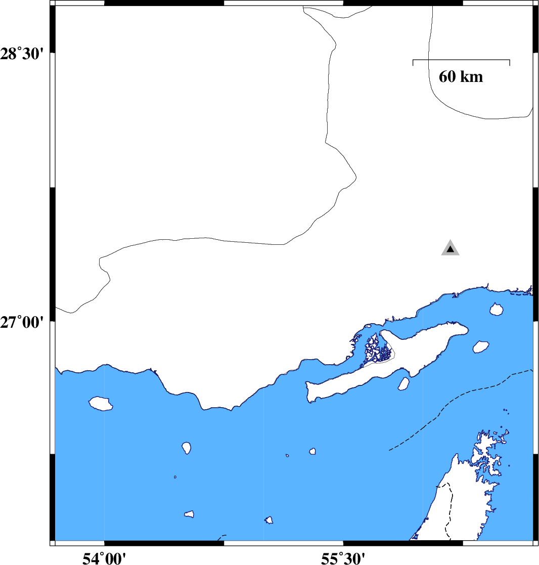 | 2019/10/18 | 04:09:38.8 | 07:39:38.8 | 26.63 | 55.26 | 14 | ML4 | Persian Gulf, 42 km North-East of Bandar-e lengeh | ||