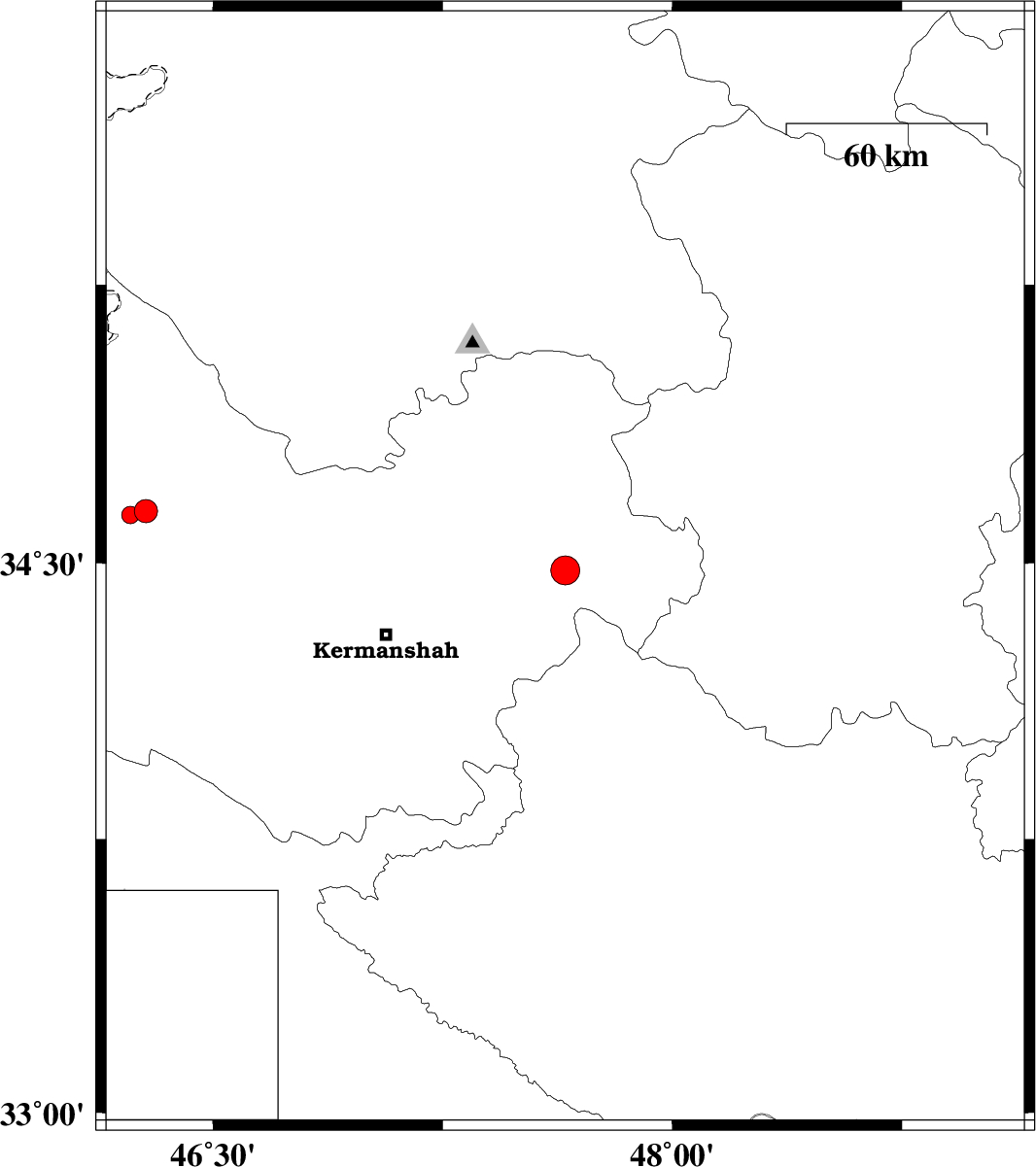 | 2019/10/01 | 11:24:24.2 | 14:54:24.2 | 34.63 | 46.23 | 14 | ML2.5 | Kermanshah Province, 30 km South-West of Javanrud |