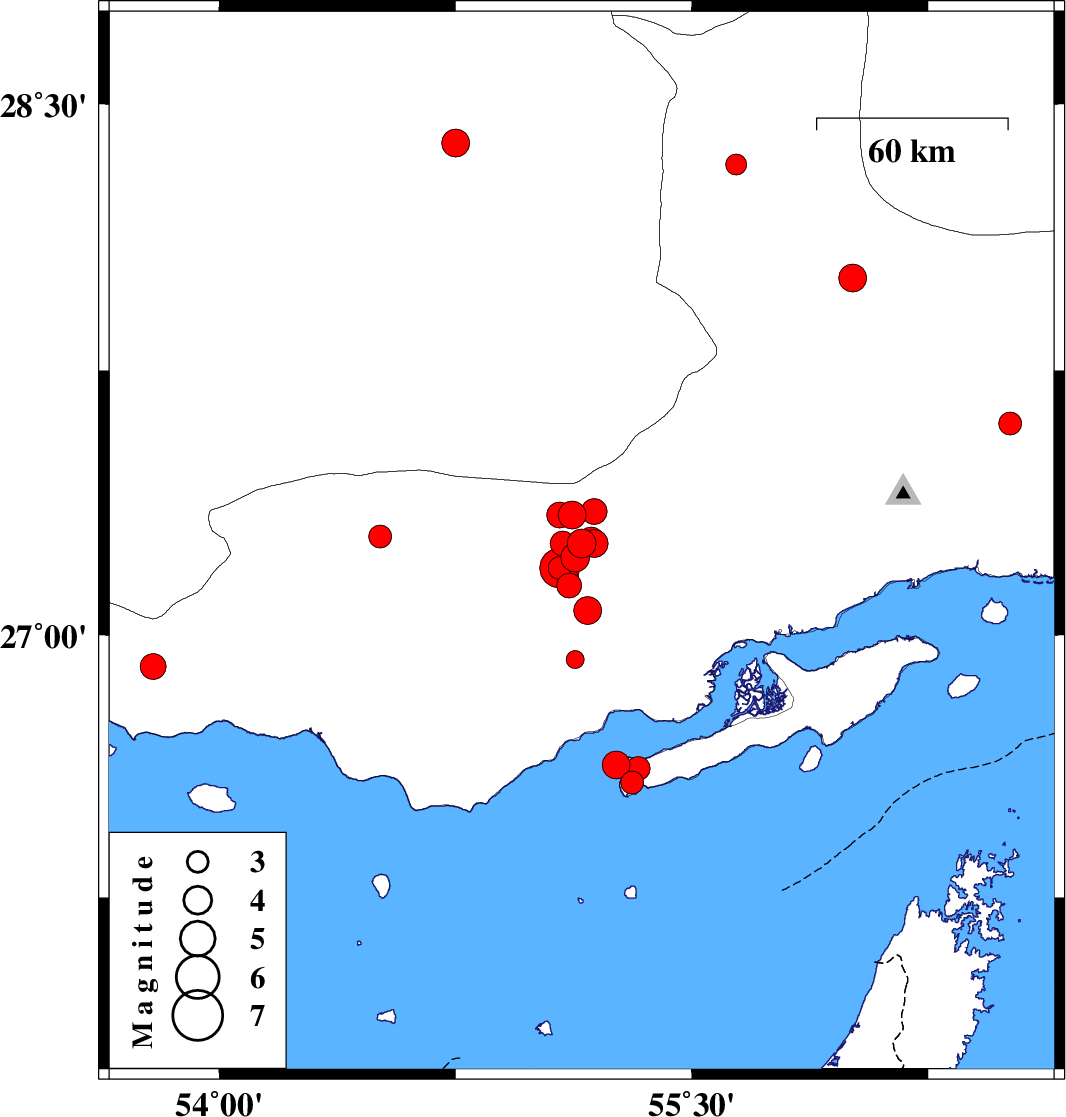 2019/10/18 04:09:38.8 07:39:38.8 26.6355.2614 ML4 Persian Gulf, 42 km North-East of Bandar-e lengeh