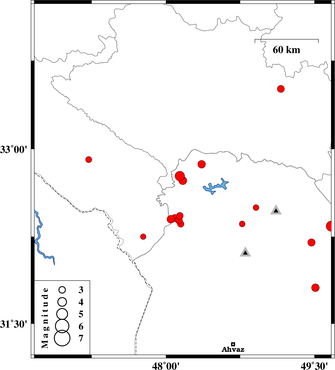 | 2019/10/05 | 04:15:58.9 | 07:45:58.9 | 32.91 | 47.22 | 14 | ML2.8 | Ilam Province, 24 km North of Dehloran |