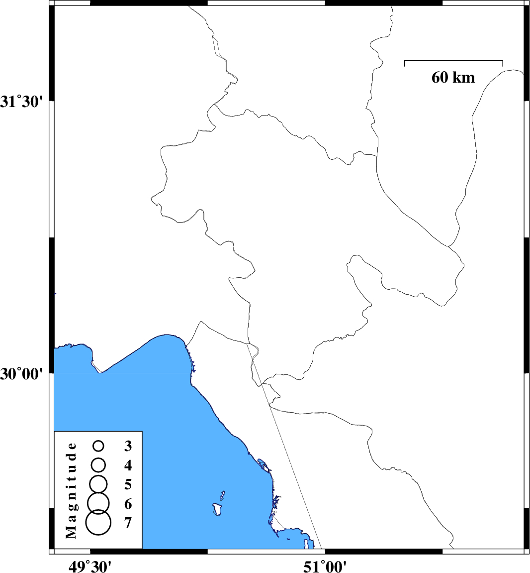 | 2019/11/01 | 19:23:38.4 | 22:53:38.4 | 30.52 | 50.77 | 14 | ML3.8 | Kohkiluieh va boyerahmad Province, 19 km North of Dogonbadan |