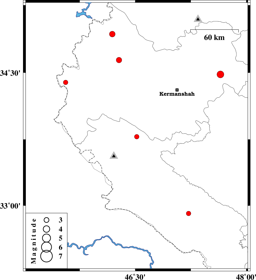 2019/10/28 | 14:13:05.7 | 17:43:05.7 | 34.48 | 47.65 | 31 | ML4.2 | Kermanshah Province, 4 km of Sahneh | ||