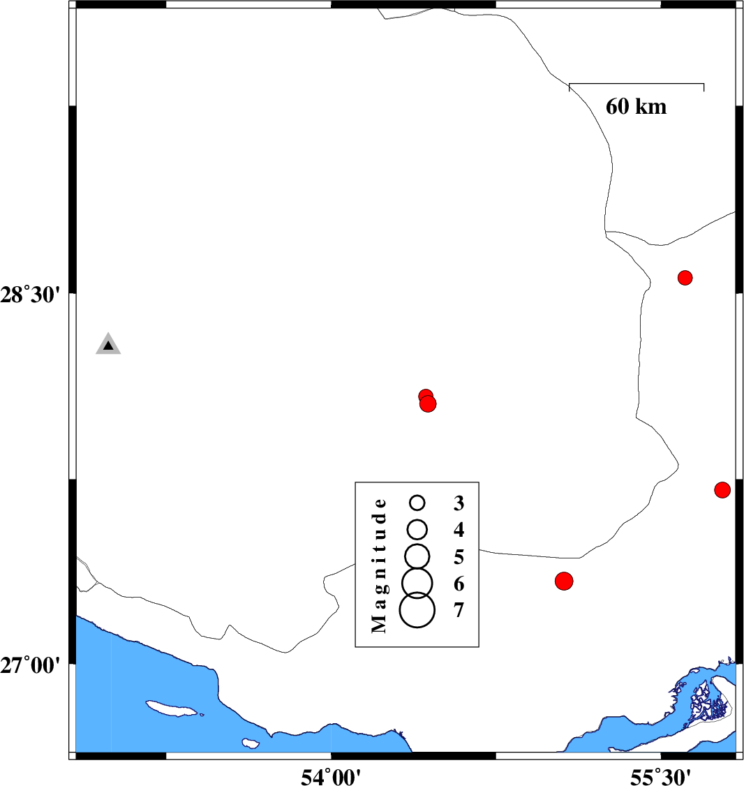 | 2019/10/06 | 00:17:52.8 | 03:47:52.8 | 27.66 | 53.16 | 16 | ML2.9 | Fars Province, 36 km North of Lamerd |