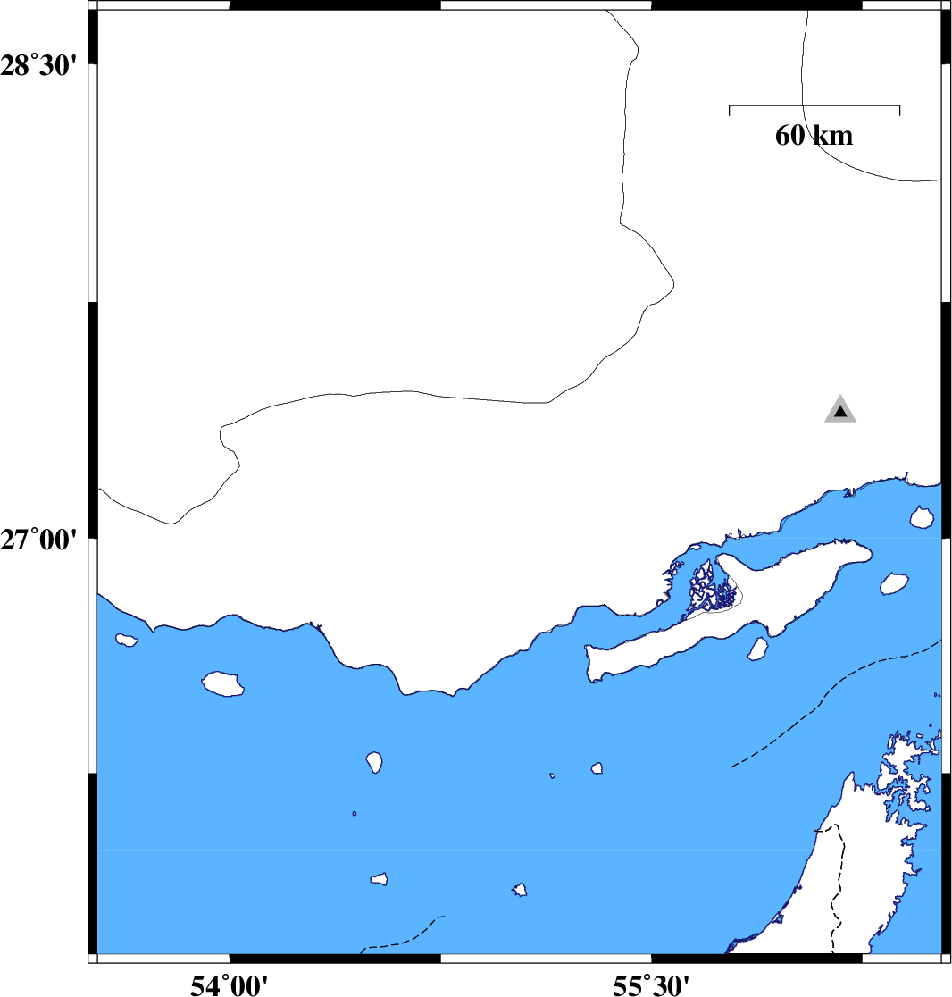 | 2019/10/31 | 15:43:58.5 | 19:13:58.5 | 26.02 | 54.82 | 10 | ML4.8 | Persian Gulf, 27 km North-West of Abu Musa |