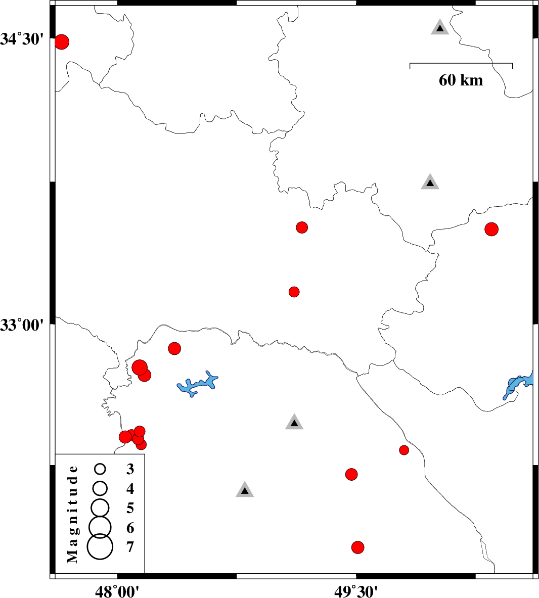 | 2019/11/12 | 11:51:34.3 | 15:21:34.3 | 33.17 | 49.11 | 10 | ML2.9 | Lorestan Province, 35 km South of Dorud | ||