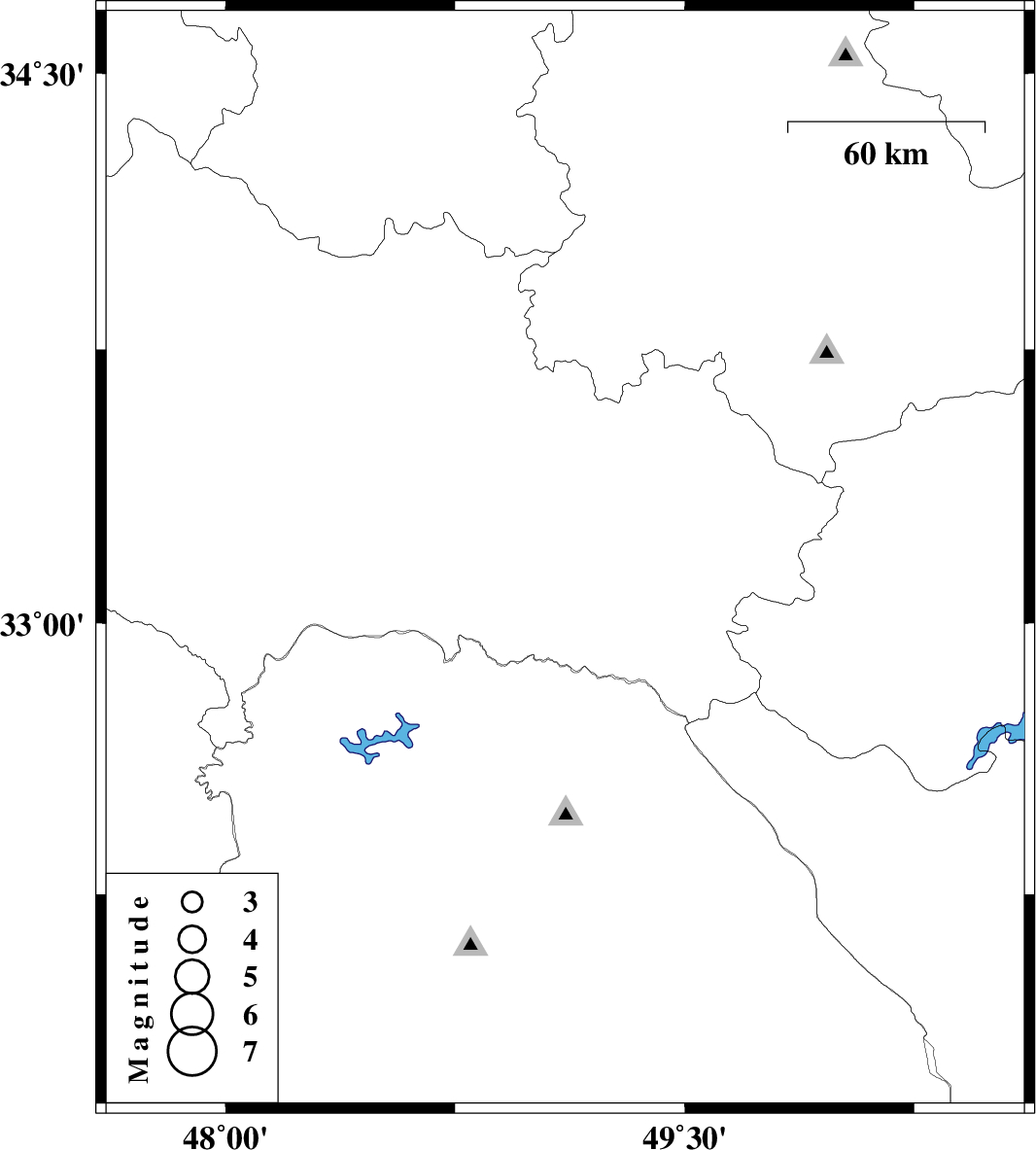 | 2019/11/12 | 11:51:34.3 | 15:21:34.3 | 33.17 | 49.11 | 10 | ML2.9 | Lorestan Province, 35 km South of Dorud |
