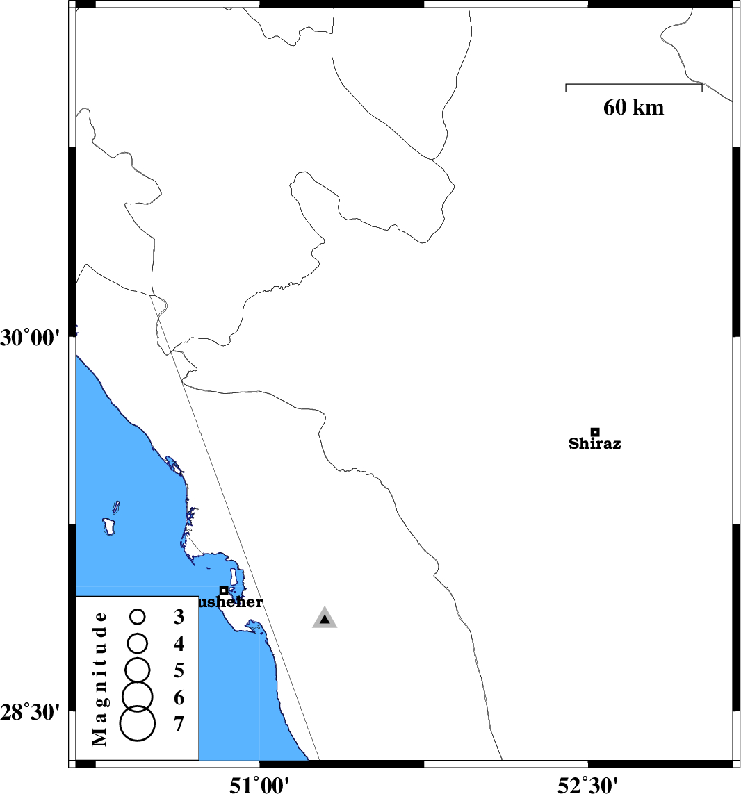 | 2019/11/13 | 11:28:42.2 | 14:58:42.2 | 29.8 | 51.66 | 10 | ML4.2 | Fars Province, 20 km North of Kazerun |