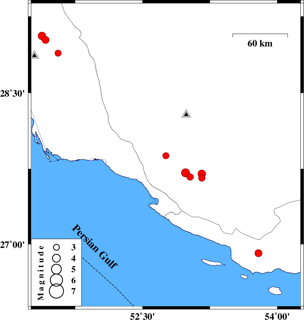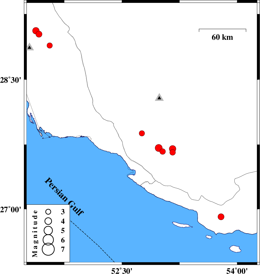 | 2019/11/14 | 00:23:28.2 | 03:53:28.2 | 27.88 | 52.76 | 10 | ML3.2 | Fars Province, 39 km North-West of Mehr | ||
