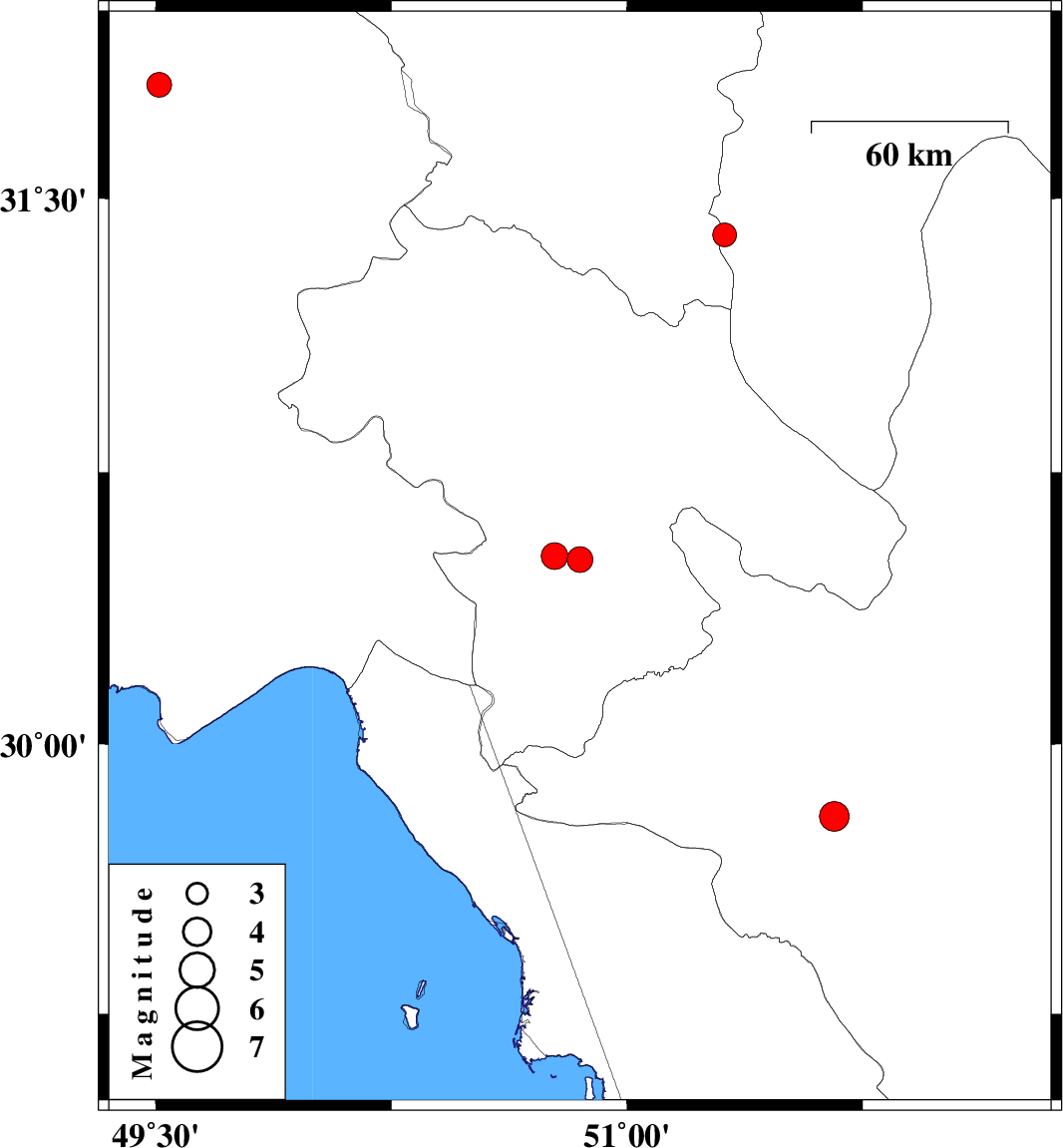 | 2019/11/01 | 19:23:38.4 | 22:53:38.4 | 30.52 | 50.77 | 14 | ML3.8 | Kohkiluieh va boyerahmad Province, 19 km North of Dogonbadan | ||
