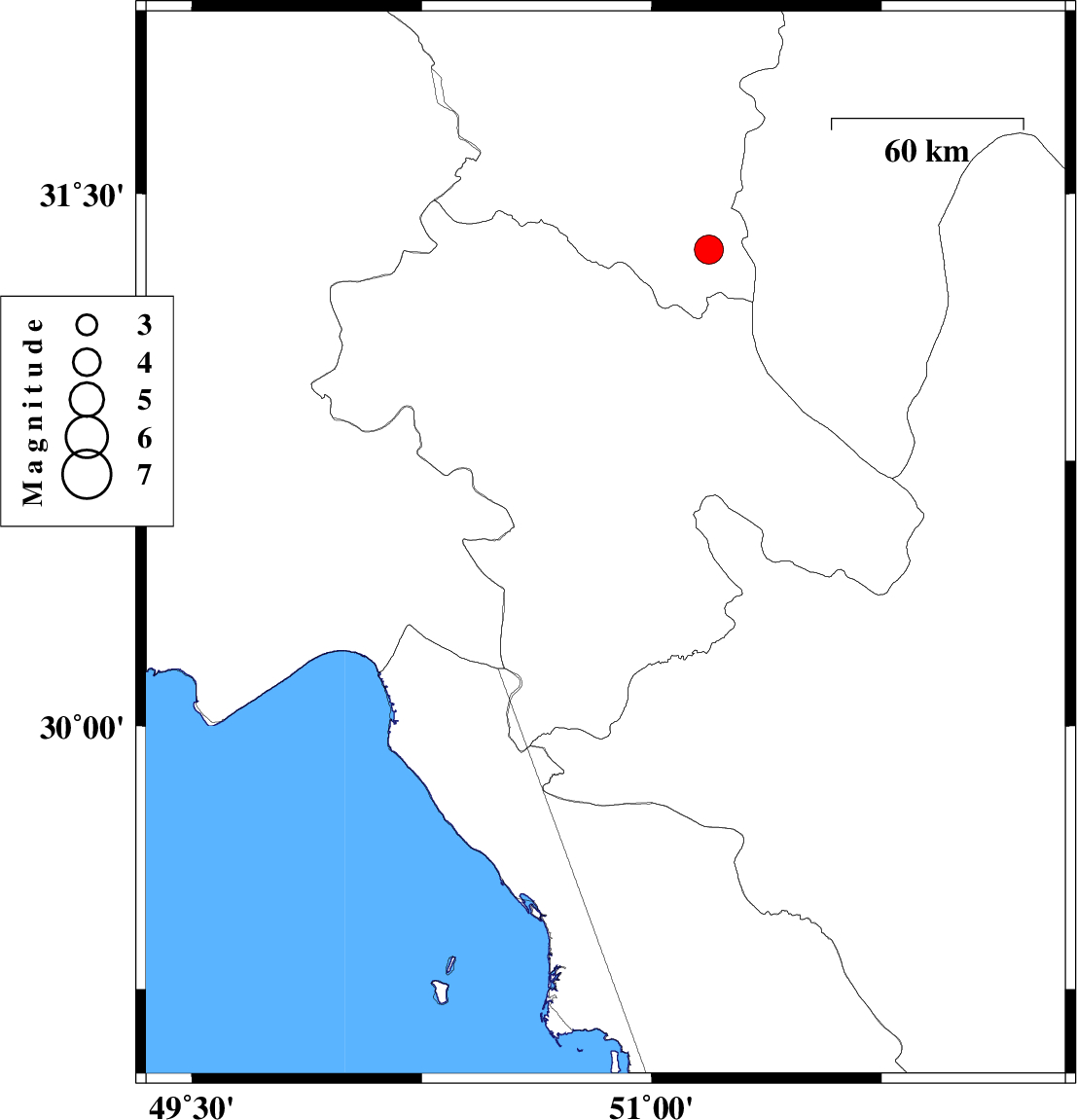 2019/11/13 | 11:28:42.2 | 14:58:42.2 | 29.8 | 51.66 | 10 | ML4.2 | Fars Province, 20 km North of Kazerun |