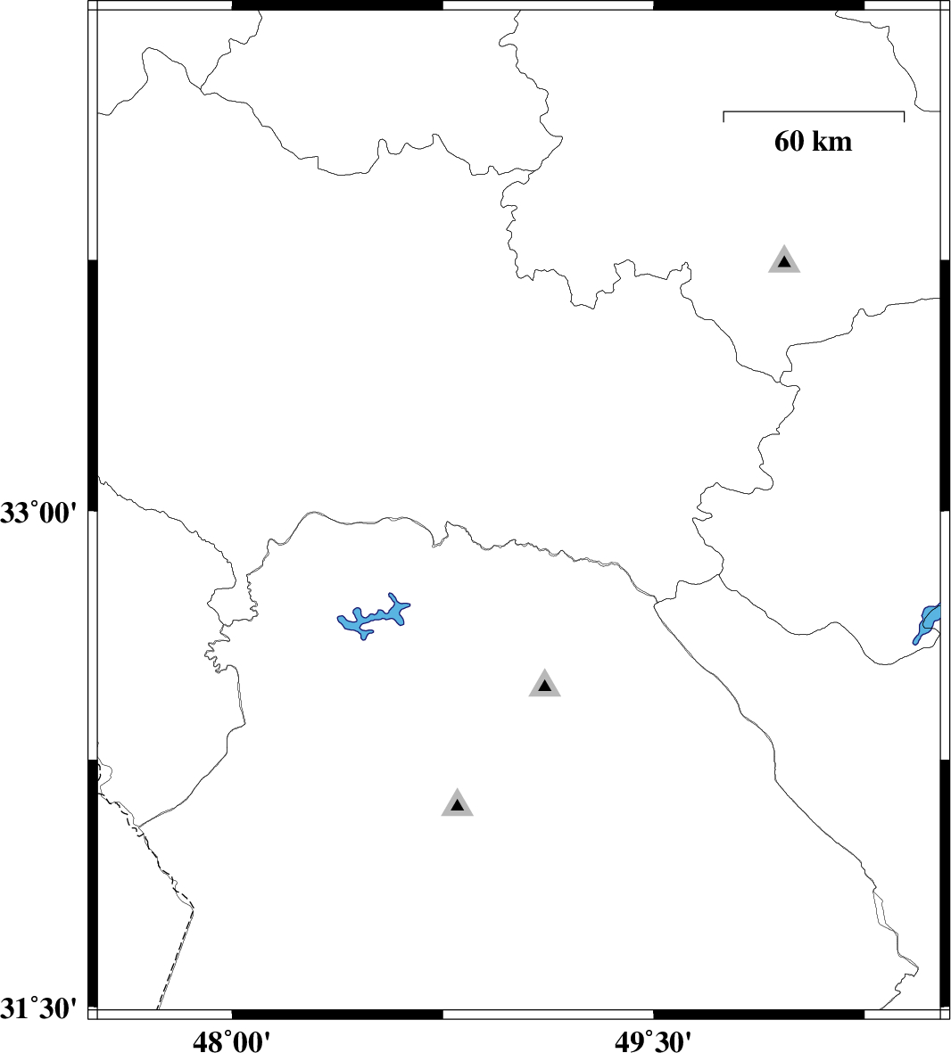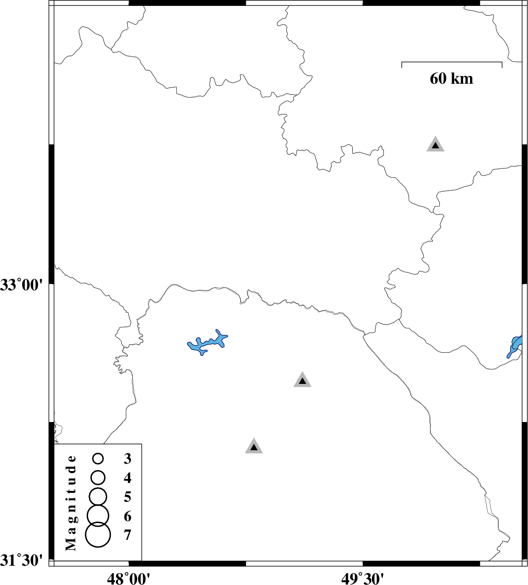 | 2019/11/22 | 19:42:42.9 | 23:12:42.9 | 32.99 | 49.02 | 10 | ML3.2 | Lorestan Province, 55 km South of Dorud |