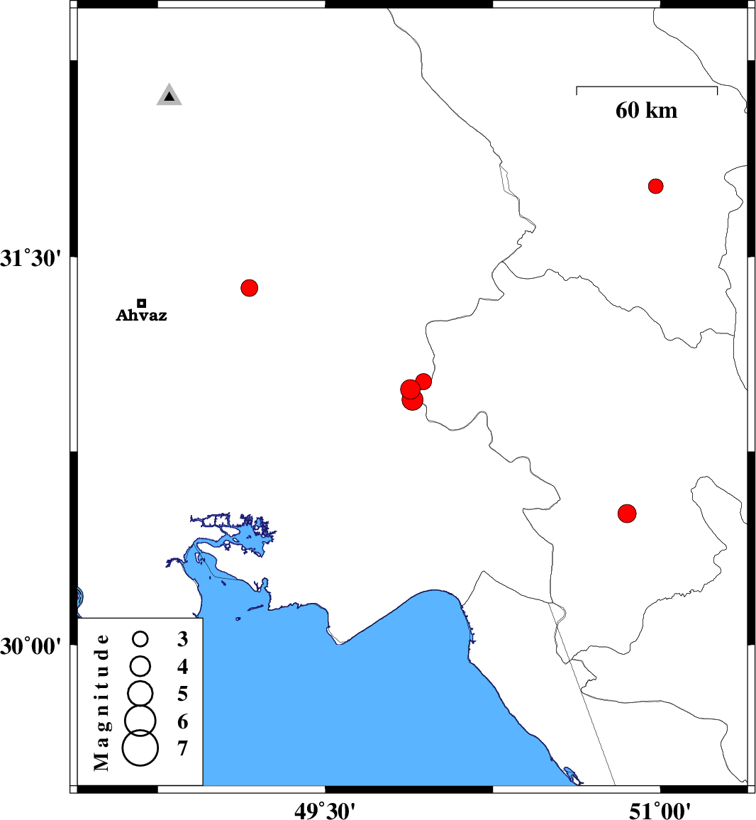 2019/11/23 13:45:32.9 17:15:32.9 30.9949.8812 ML3.9 Khoozestan Province, 30 km North-East of Omidiyeh