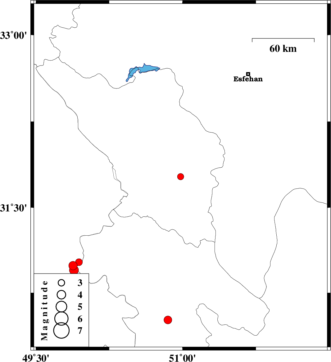 | 2019/11/23 | 12:42:17.5 | 16:12:17.5 | 31.02 | 49.94 | 14 | ML3.2 | Khoozestan Province, 36 km North-East of Omidiyeh | ||