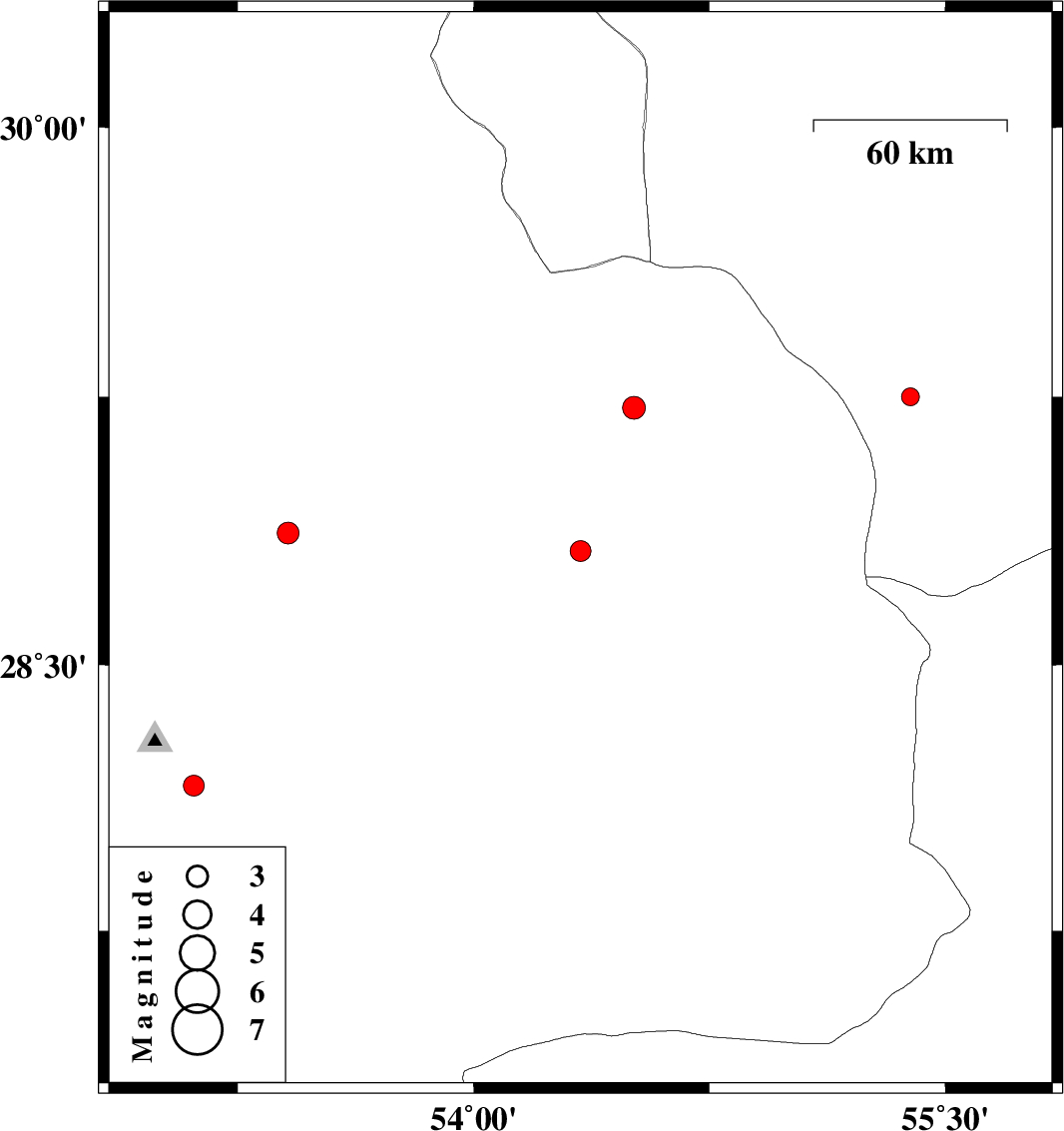 | 2019/11/20 | 12:41:45.1 | 16:11:45.1 | 29.22 | 54.51 | 14 | ML3.3 | Fars Province, 18 km -East of Neyriz | ||
