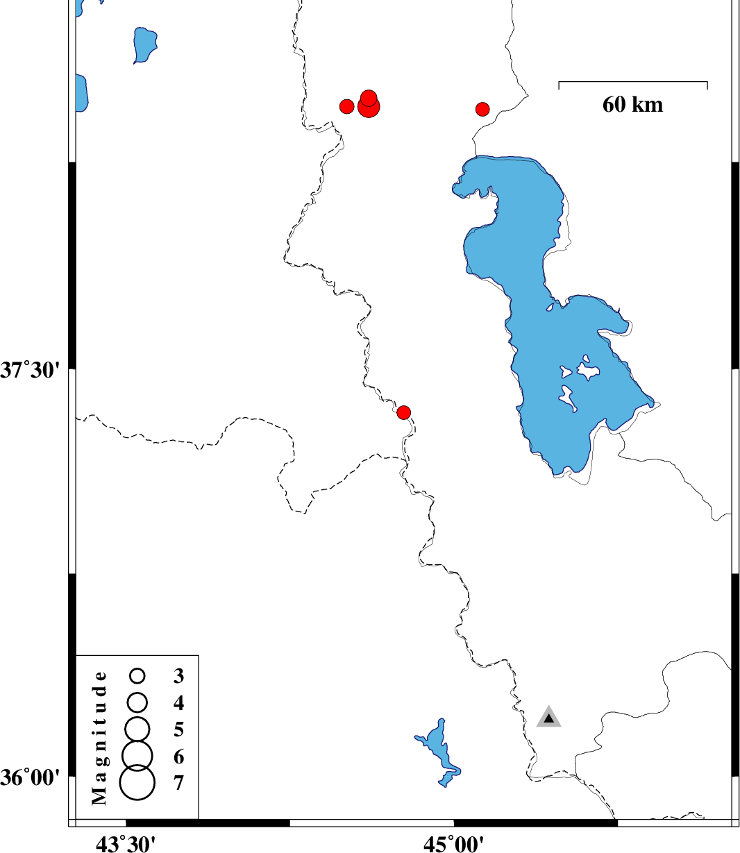 | 2019/11/19 | 00:14:14.9 | 03:44:14.9 | 38.45 | 44.61 | 10 | ML4.5 | Azarbaijan Gharbi Province, 32 km North-West of Salmas | ||