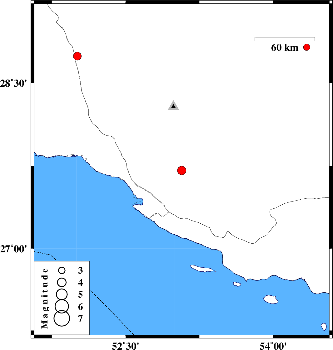 | 2019/11/23 | 00:42:06.2 | 04:12:06.2 | 28.74 | 52.01 | 10 | ML3.6 | Fars Province, 16 km South of Farashband |