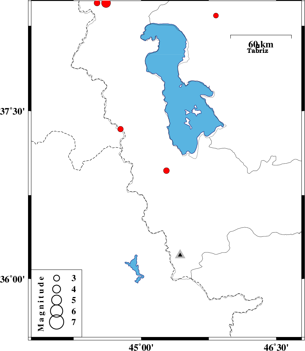 | 2019/11/19 | 00:14:14.9 | 03:44:14.9 | 38.45 | 44.61 | 10 | ML4.5 | Azarbaijan Gharbi Province, 32 km North-West of Salmas |