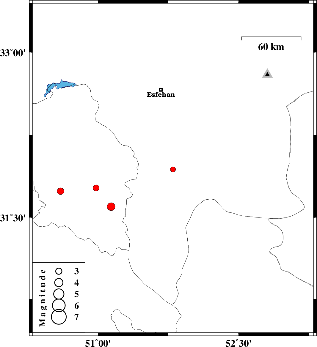 2019/11/27 | 00:46:46.5 | 04:16:46.5 | 31.94 | 51.8 | 10 | ML2.5 | Esfahan Province, 10 km of Shahreza | ||