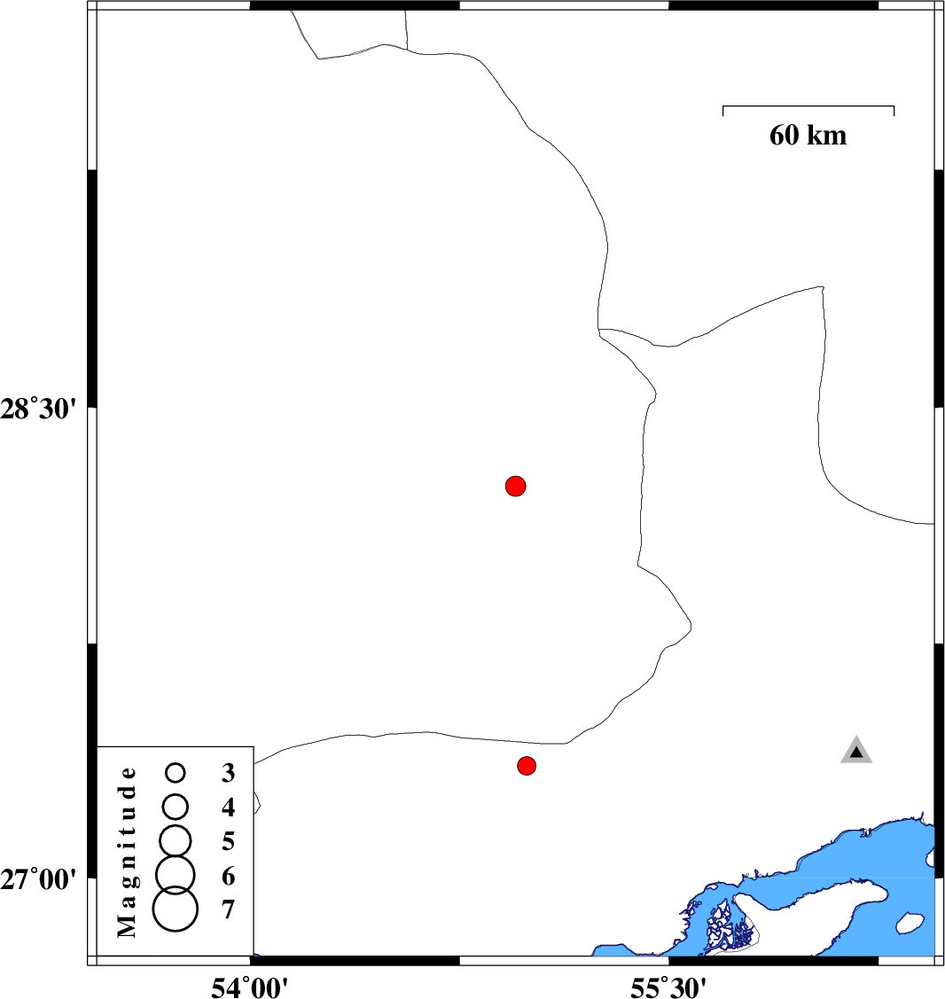 2019/12/02 | 02:44:12.8 | 06:14:12.8 | 28.25 | 54.95 | 13 | ML:3.3 | Fars Province, 69 km South-East of Darab | ||