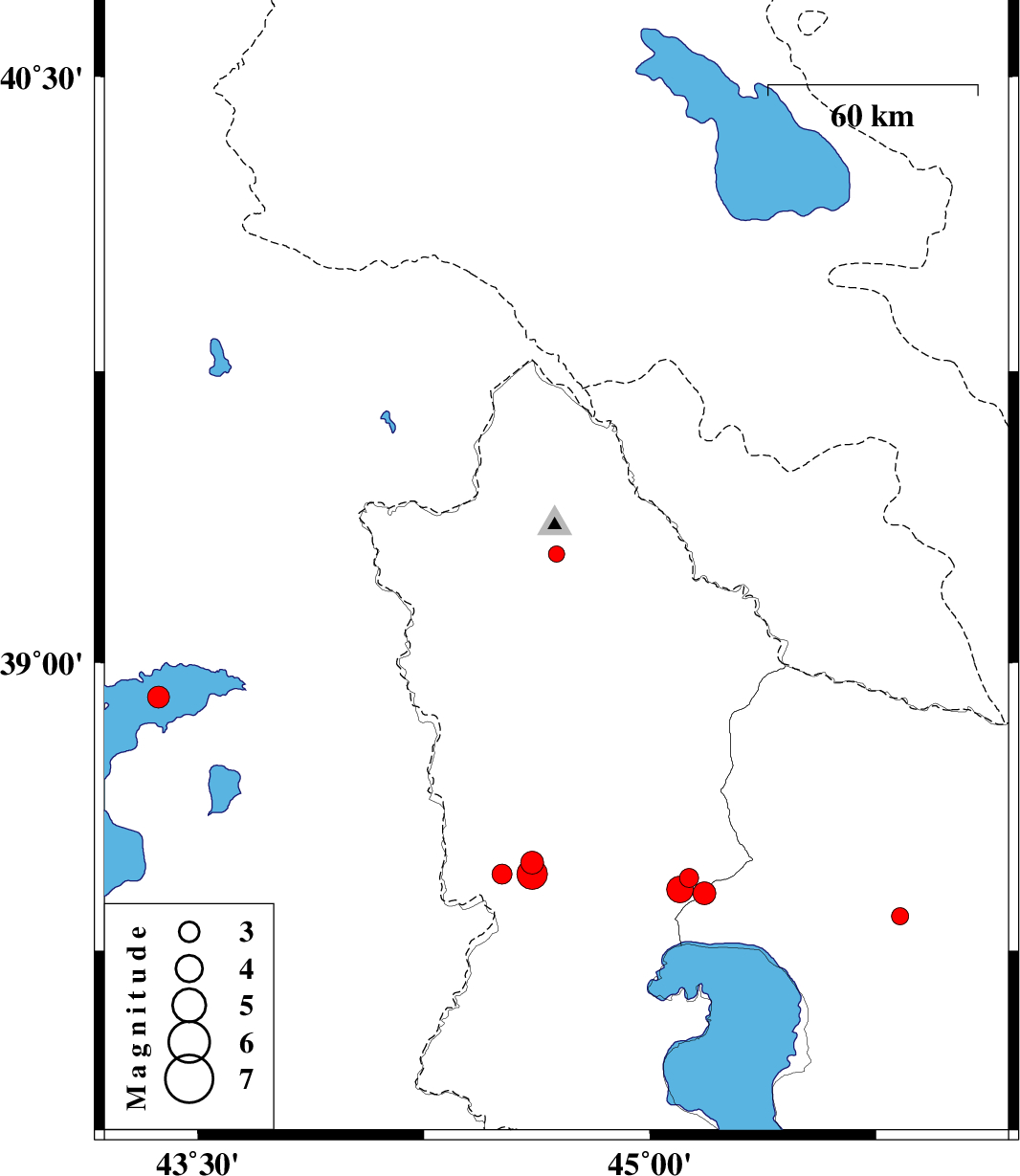 | 2019/11/11 | 00:58:40.6 | 04:28:40.6 | 38.41 | 45.1 | 10 | ML3.9 | Azarbaijan Gharbi Province, 21 km South-East of Khoy |