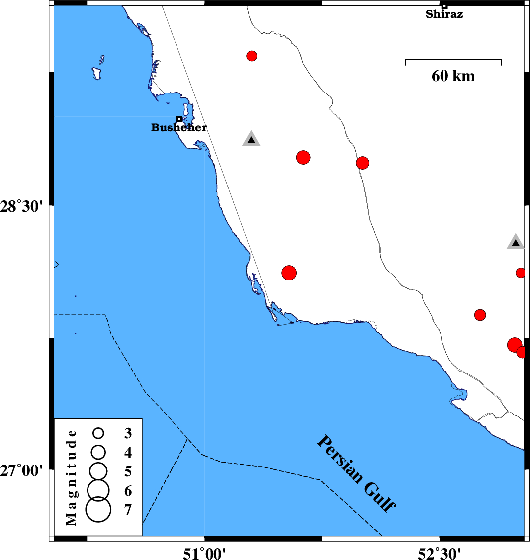 2019/12/04 | 21:37:02.6 | 01:07:02.6 | 28.12 | 51.54 | 10 | ML4.3 | Bushehr Province, 61 km South-East of Khormog | ||