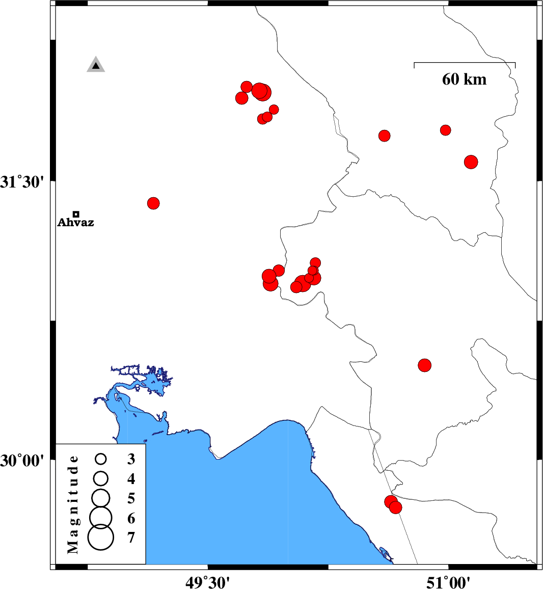 2019/11/23 | 12:42:17.5 | 16:12:17.5 | 31.02 | 49.94 | 14 | ML3.2 | Khoozestan Province, 36 km North-East of Omidiyeh | ||