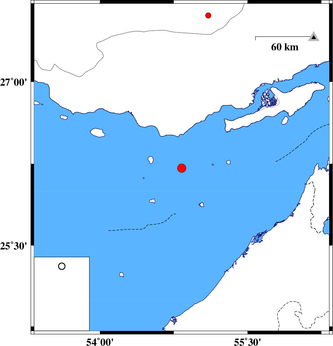 2019/12/12 | 14:25:05.8 | 17:55:05.8 | 26.21 | 54.83 | 14 | ML3.9 | Persian Gulf, 35 km South of Bandar-e lengeh | ||
